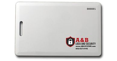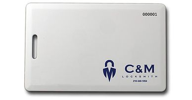 A proximity card is the size and shape of a credit card. These cards come with slot punch options on both the vertical end and horizontal end of the card, which lets you decide on what end, if any, you would like the hold for a key ring or lanyard. Please note that these proximity cards do not come pre-punched and are only available in white. They can either be etched with your logo or printed.