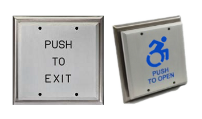 H-series push plate exit release models come in a variety of sizes, shapes and color options, with engraved button messages that include: